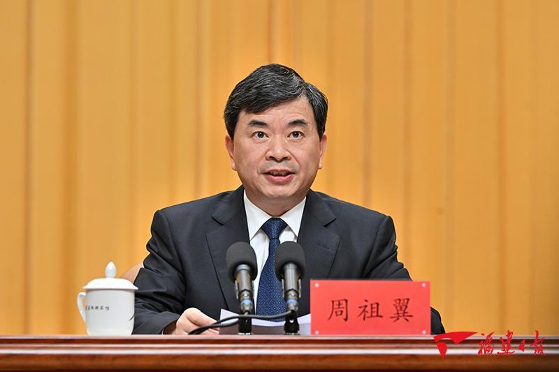 周祖翼指出,党中央决定,从今年4月开始在全党自上而下分两批开展学习贯彻习近平新时代中国特色社会主义思想主题教育。习近平总书记发表一系列重要讲话,深刻阐述开展主题教育的重大意义和目标要求,闪耀着马克思主义真理光辉,为全党开展主题教育提供了根本遵循。福建是习近平新时代中国特色社会主义思想的重要孕育地和实践地,承载着习近平总书记关心关怀和殷殷嘱托,开展主题教育具有独特优势、肩负重大使命、尤显紧迫重要。当前,全省上下正奋力谱写中国式现代化的福建篇章,全省各级党委(党组)要认真学习贯彻习近平总书记重要讲话精神,深刻理解把握开展主题教育的重大意义,深刻理解把握主题教育的总要求、目标任务和重点措施,深刻理解把握加强对主题教育领导的重要要求,切实把思想和行动统一到党中央决策部署上来,带着更深感情,以更强自觉、更高标准、更严要求、更实举措,把“学思想、强党性、重实践、建新功”总要求贯穿主题教育全过程,坚持学思用贯通、知信行统一,在以学铸魂、以学增智、以学正风、以学促干方面取得实实在在的成效,以实际行动坚定拥护“两个确立”、坚决做到“两个维护”。
